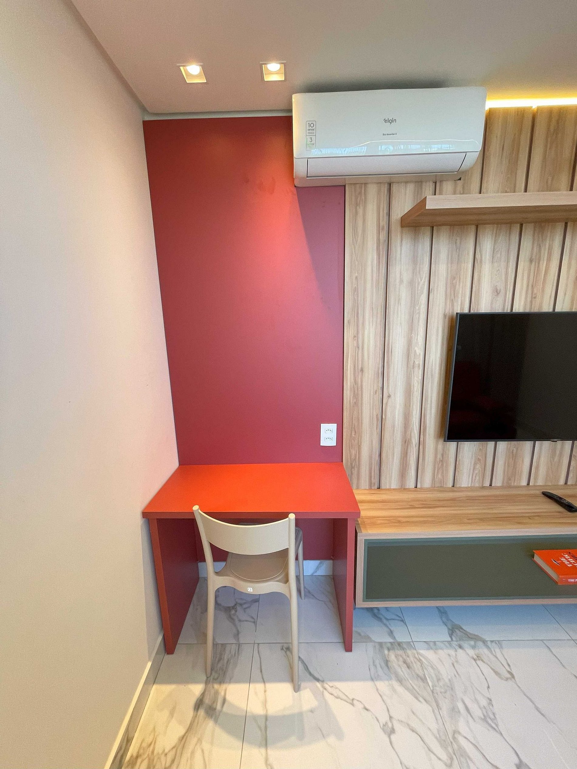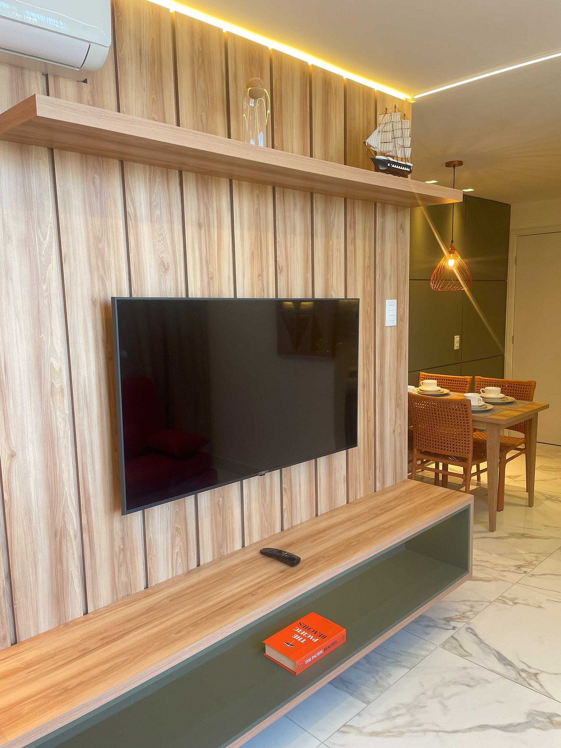 Cozinha completa com todos os utensílios, ar condicionado, airfryer, sanduicheira, liquidificador, cafeteira, jogo de jantar, kit panelas, jogo de taças, copos, kit sobremesa, jarra, balde de gelo, abridor de vinho, abridor de garrafa, kit talheres, desconso panelas, kit limpeza. Sala com sofá cama para duas pessoas, Ar condicionado, TV 50 polegadas 4K com vários App, decoração temática, mesinha terraço. Home office, espaço para trabalho. Wifi para todas as conexões. Fechadura eletrônica. Quarto com cama casal, TV 32 polegadas smart com App´s, iluminação indireta melhor conforto visual, Ar condicionado, quarda roupas, espelho de corpo, roupa de cama completo. Banheiro, chuveiro quente e frio, toalhas banho e rosto, kit apoio escova, sabonetes líquidos e barra, box, nichos de apoio, espelho, varal de roupas.