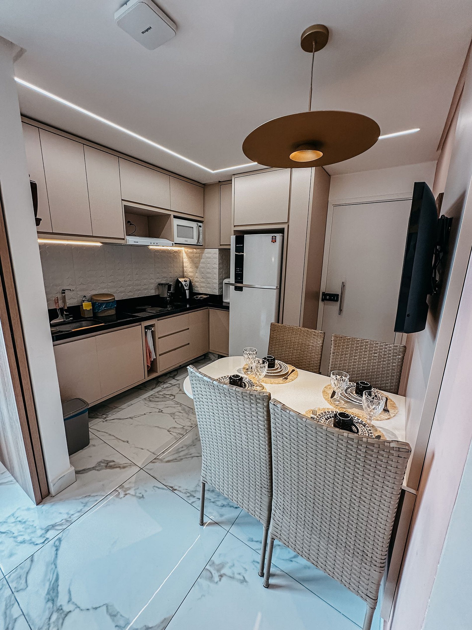 Cozinha completa com todos os utensílios, ar condicionado, airfryer, sanduicheira, liquidificador, cafeteira, jogo de jantar, kit panelas, jogo de taças, copos, kit sobremesa, jarra, balde de gelo, abridor de vinho, abridor de garrafa, kit talheres, desconso panelas, kit limpeza. Sala com sofá cama para duas pessoas, Ar condicionado, TV 50 polegadas 4K com vários App, decoração temática, mesinha terraço. Home office, espaço para trabalho. Wifi para todas as conexões. Fechadura eletrônica. Quarto com cama casal, TV 32 polegadas smart com App´s, iluminação indireta melhor conforto visual, Ar condicionado, quarda roupas, espelho de corpo, roupa de cama completo. Banheiro, chuveiro quente e frio, toalhas banho e rosto, kit apoio escova, sabonetes líquidos e barra, box, nichos de apoio, espelho, varal de roupas.