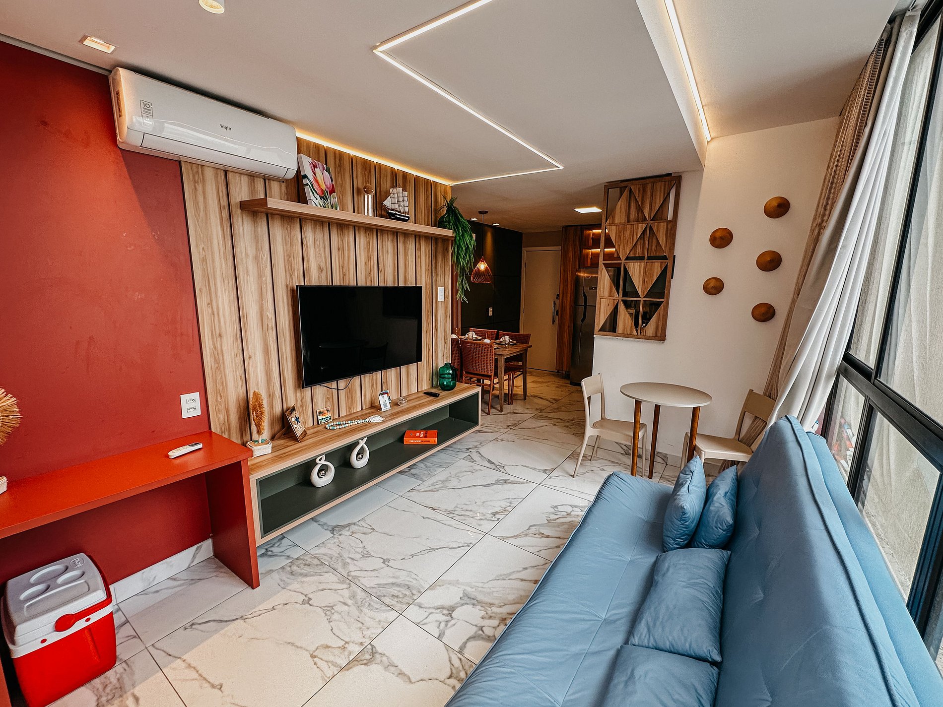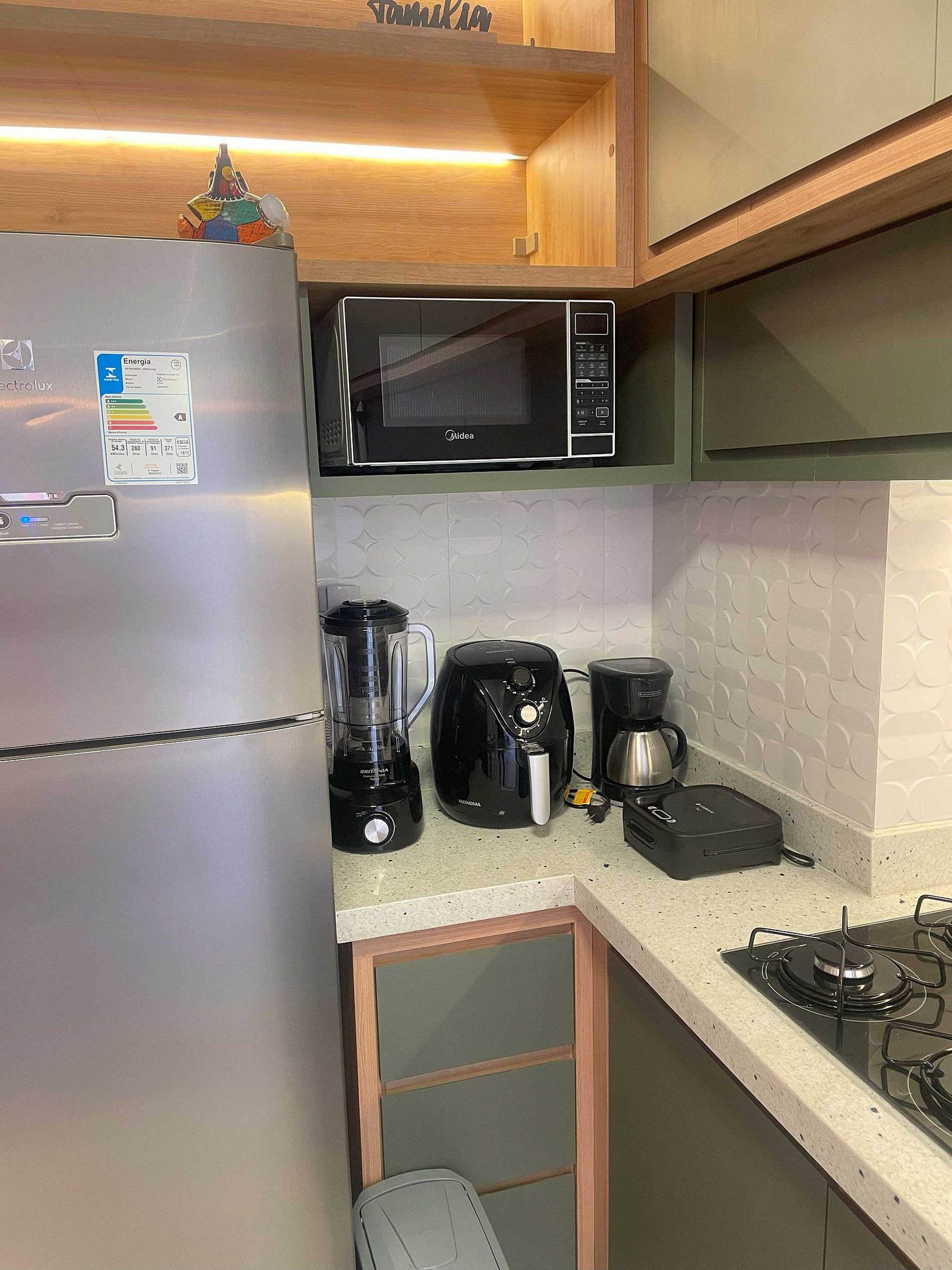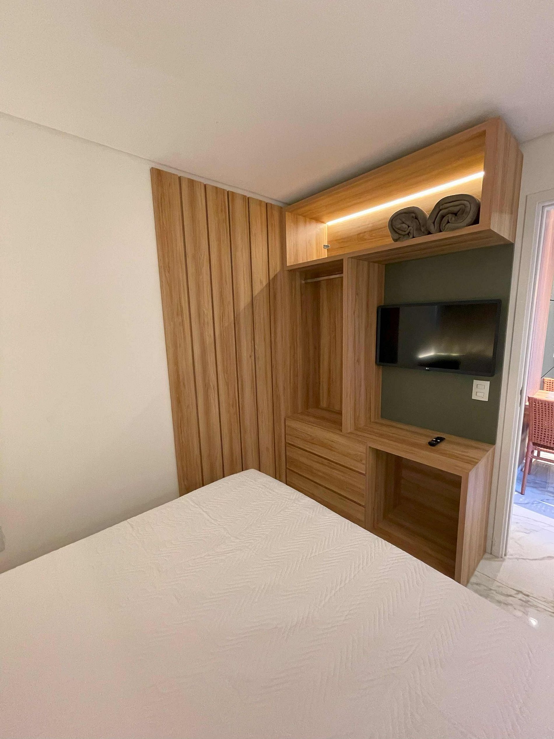 Cozinha completa com todos os utensílios, ar condicionado, airfryer, sanduicheira, liquidificador, cafeteira, jogo de jantar, kit panelas, jogo de taças, copos, kit sobremesa, jarra, balde de gelo, abridor de vinho, abridor de garrafa, kit talheres, desconso panelas, kit limpeza. Sala com sofá cama para duas pessoas, Ar condicionado, TV 50 polegadas 4K com vários App, decoração temática, mesinha terraço. Home office, espaço para trabalho. Wifi para todas as conexões. Fechadura eletrônica. Quarto com cama casal, TV 32 polegadas smart com App´s, iluminação indireta melhor conforto visual, Ar condicionado, quarda roupas, espelho de corpo, roupa de cama completo. Banheiro, chuveiro quente e frio, toalhas banho e rosto, kit apoio escova, sabonetes líquidos e barra, box, nichos de apoio, espelho, varal de roupas.