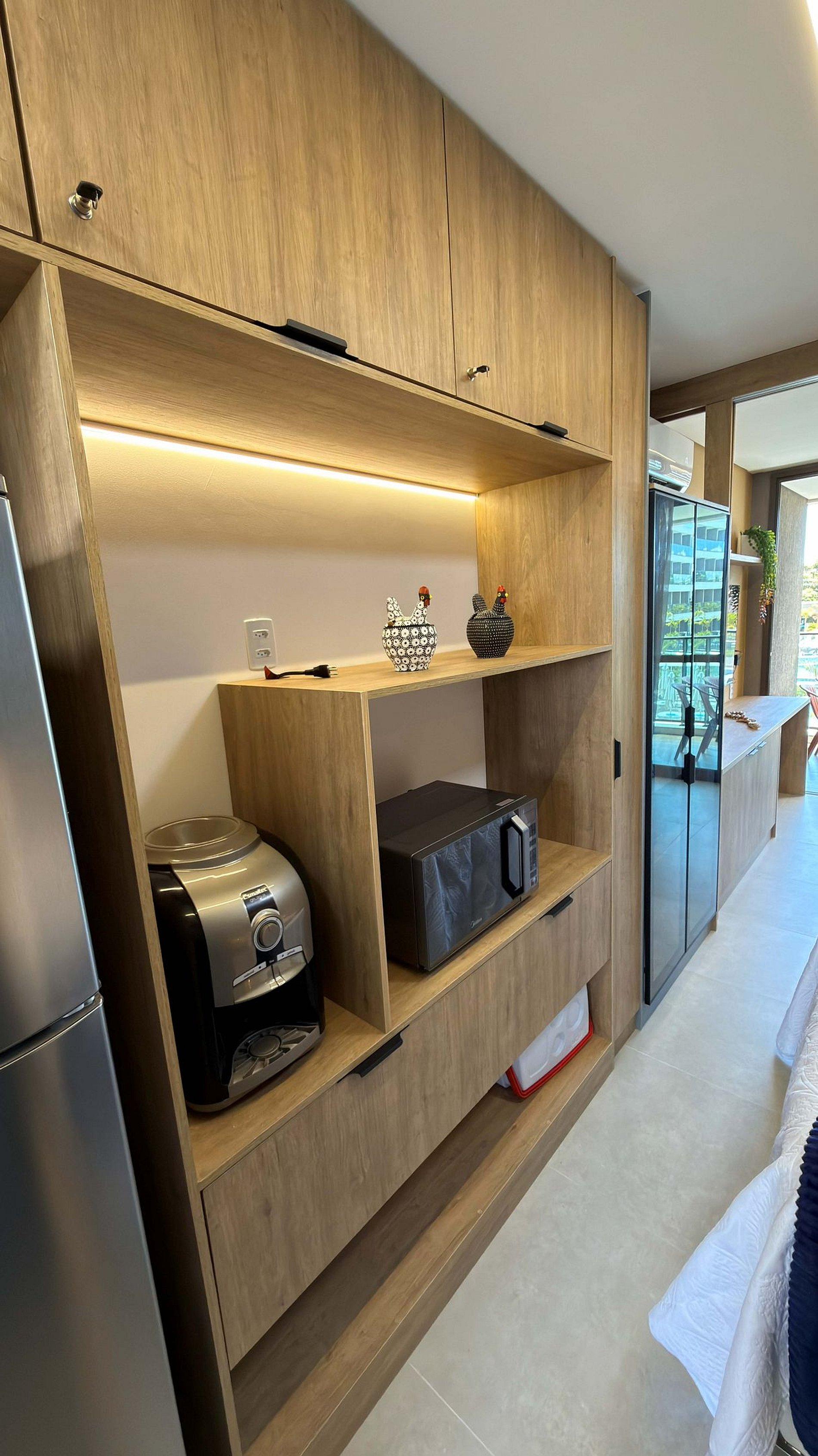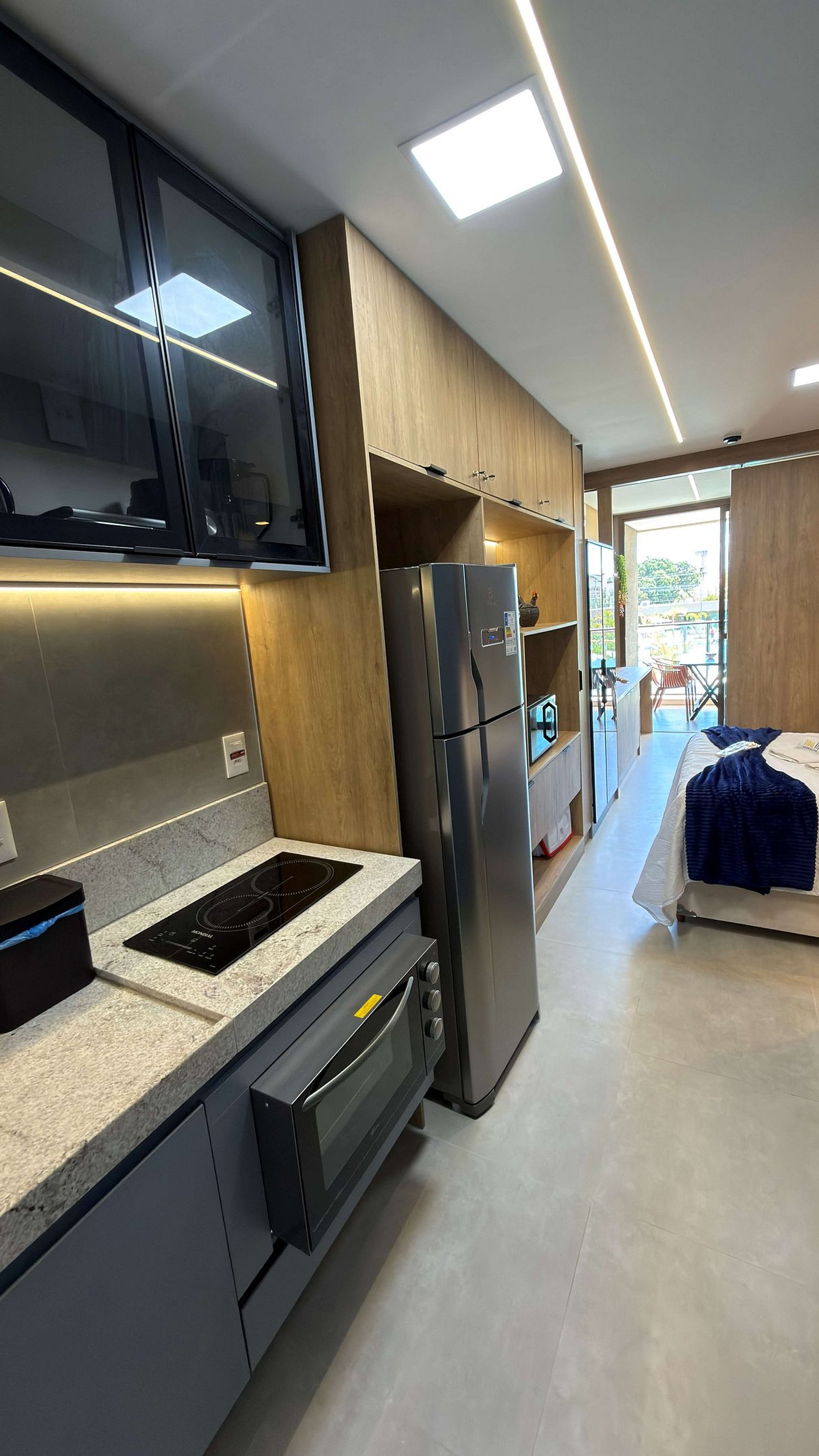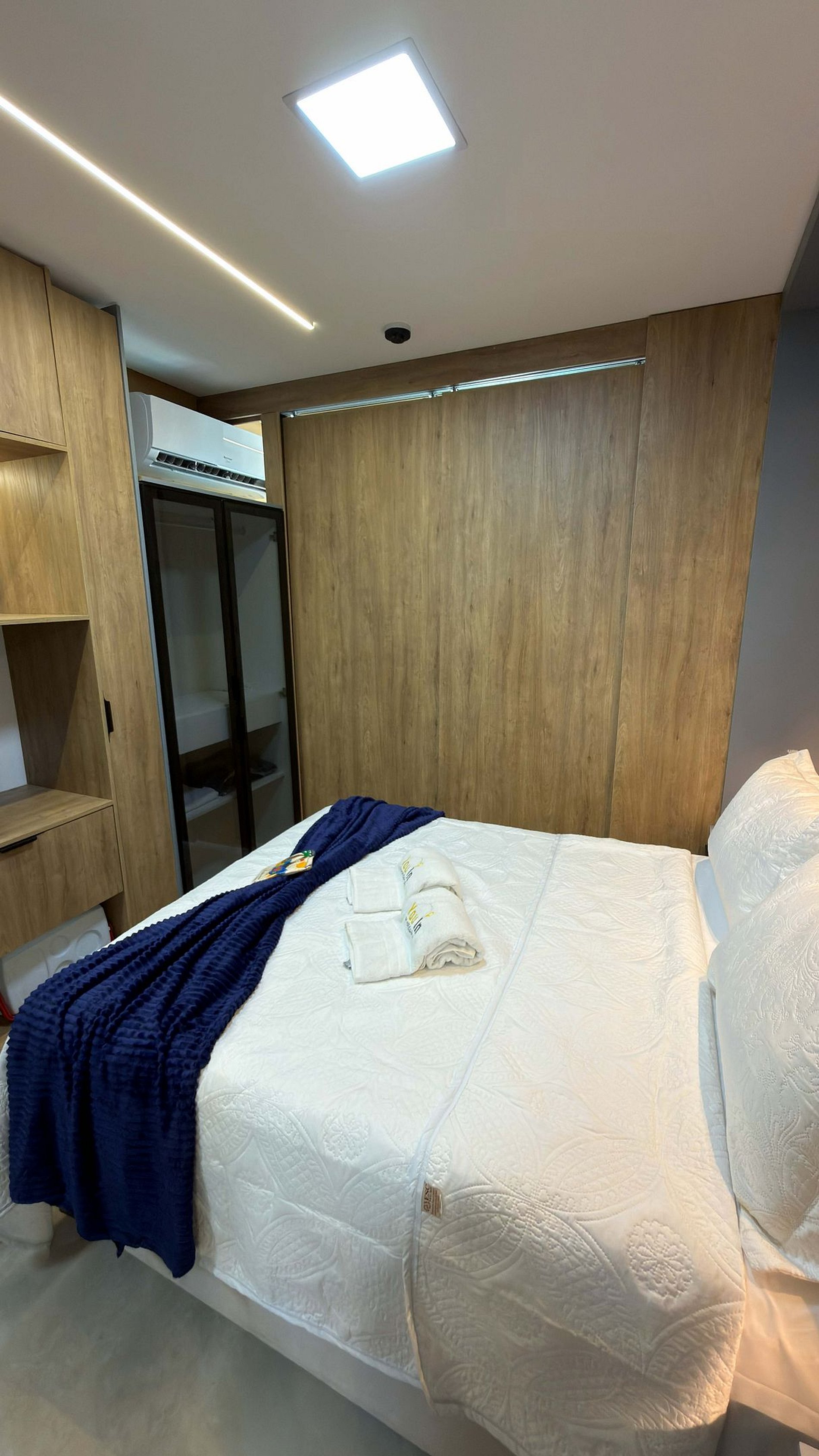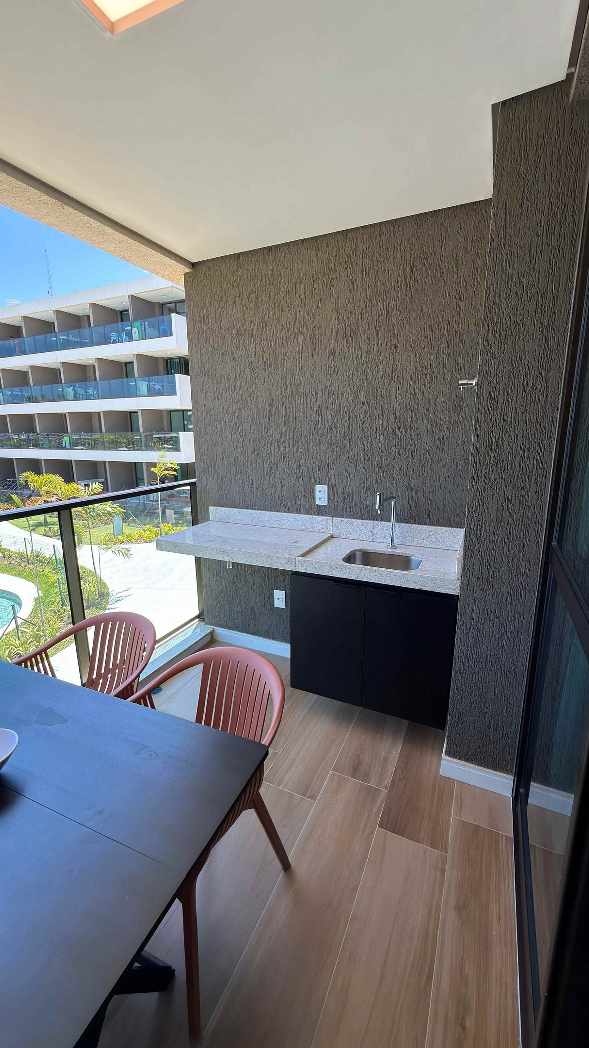 Apartamento com cozinha completa, cama confortável, TV Smart, home office e estrutura de resort com acomodação confortável, vista para o parque aquático, restaurante, quadra de jogos, parque infantil, pet place, academia, brinquedoteca, várias jacuzzi, ambinete para churrasco, ambiente banho dos pets.