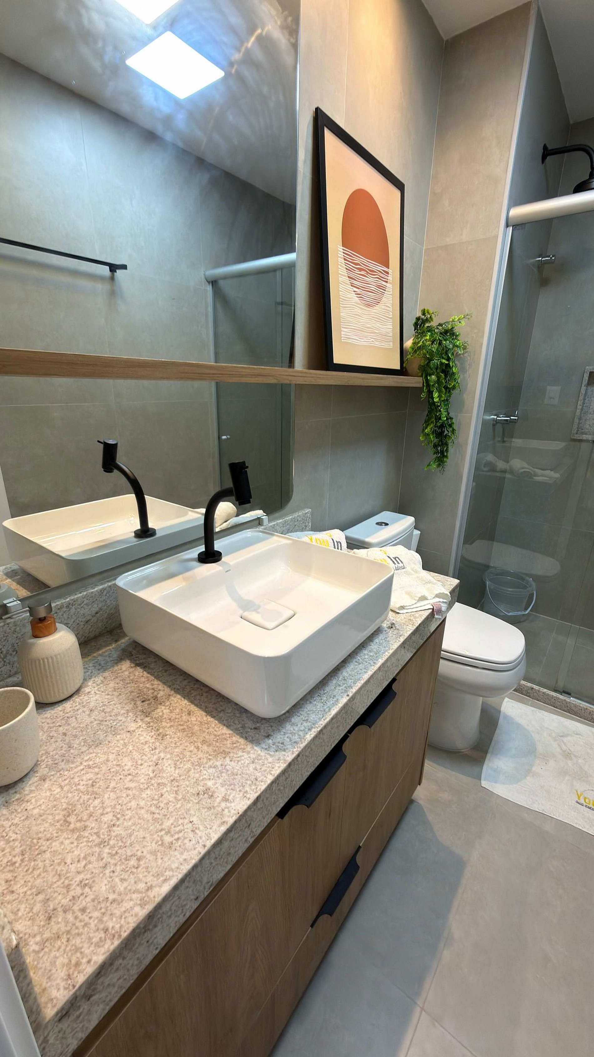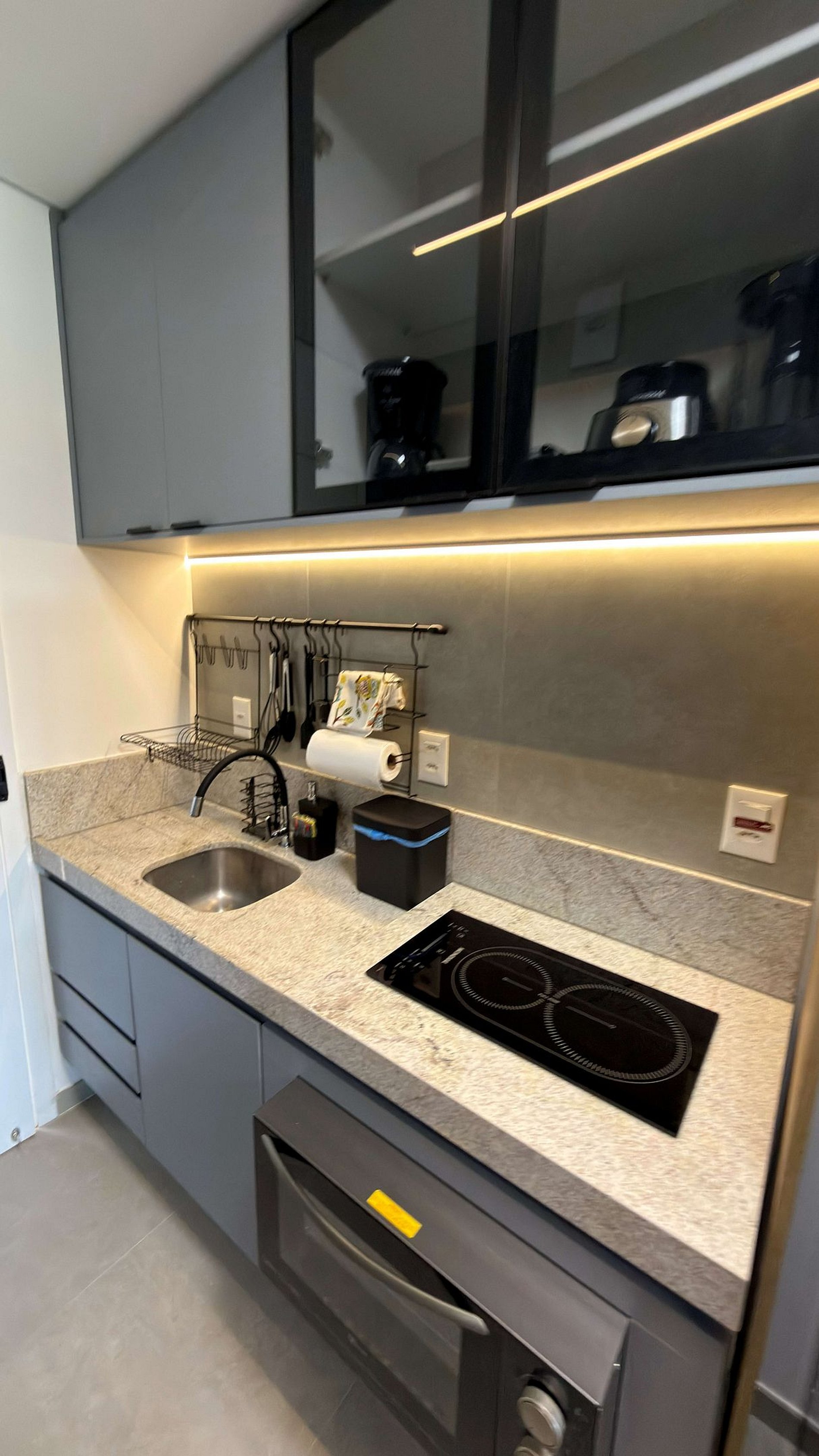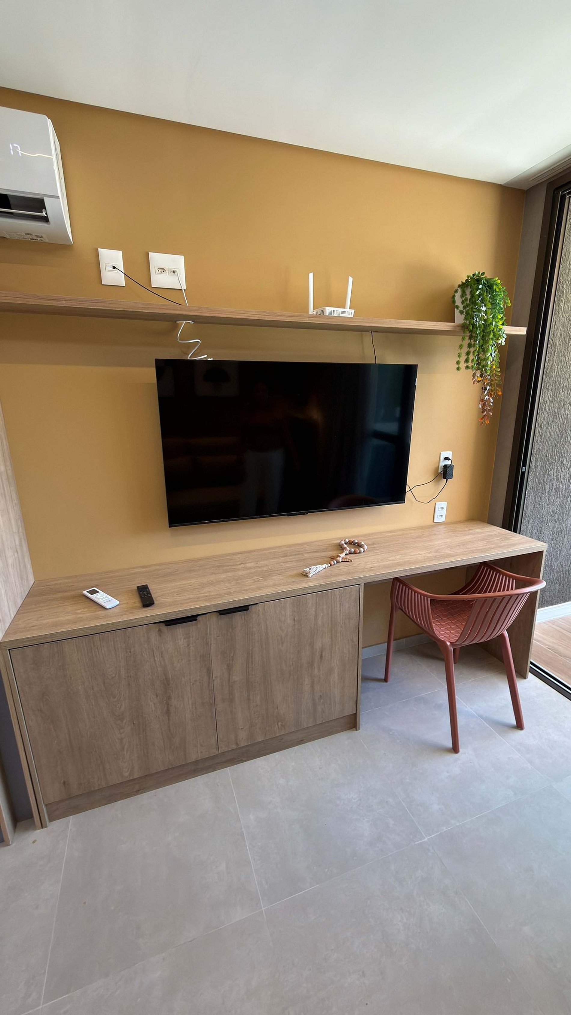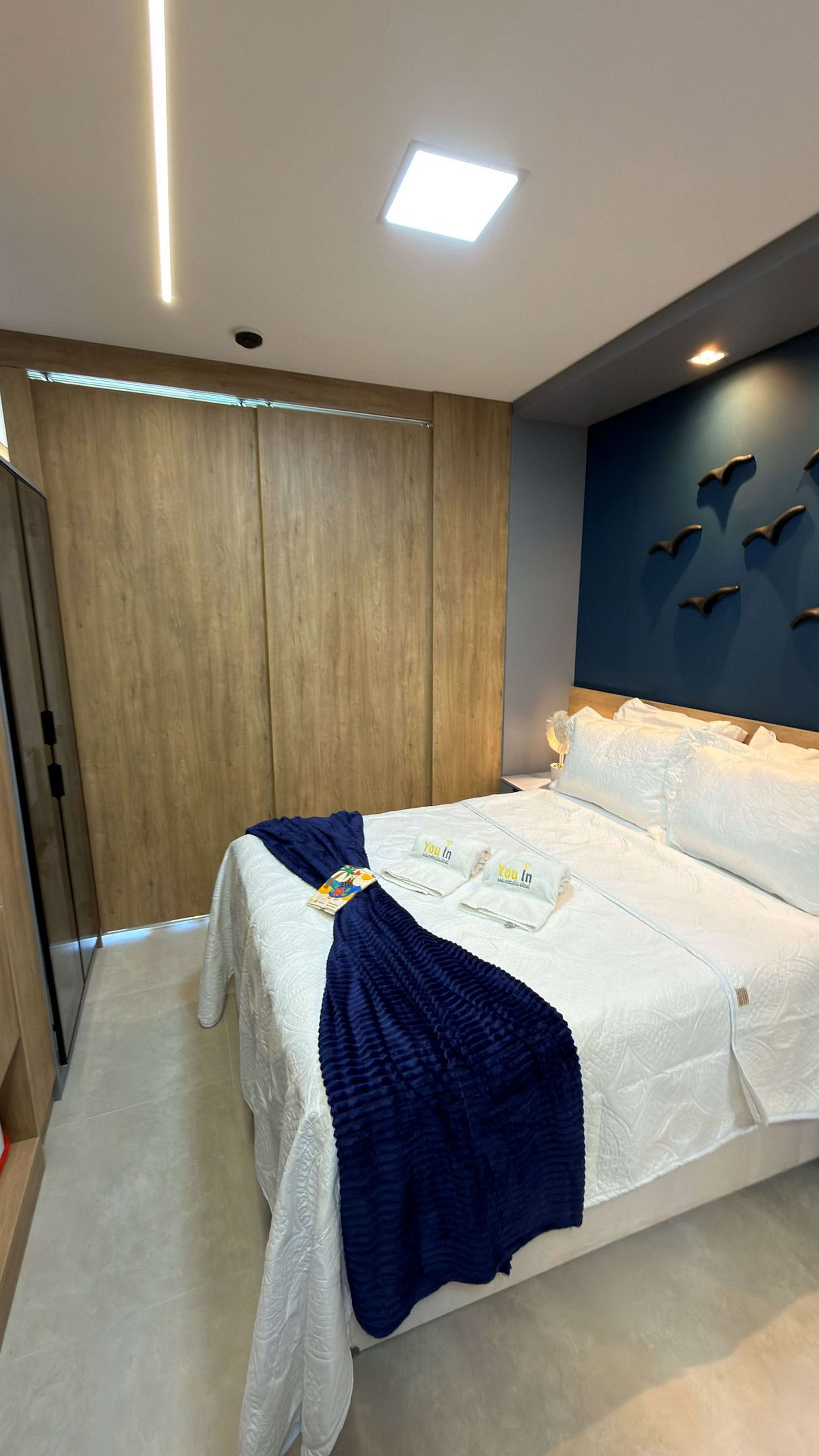 Apartamento com cozinha completa, cama confortável, TV Smart, home office e estrutura de resort com acomodação confortável, vista para o parque aquático, restaurante, quadra de jogos, parque infantil, pet place, academia, brinquedoteca, várias jacuzzi, ambinete para churrasco, ambiente banho dos pets.