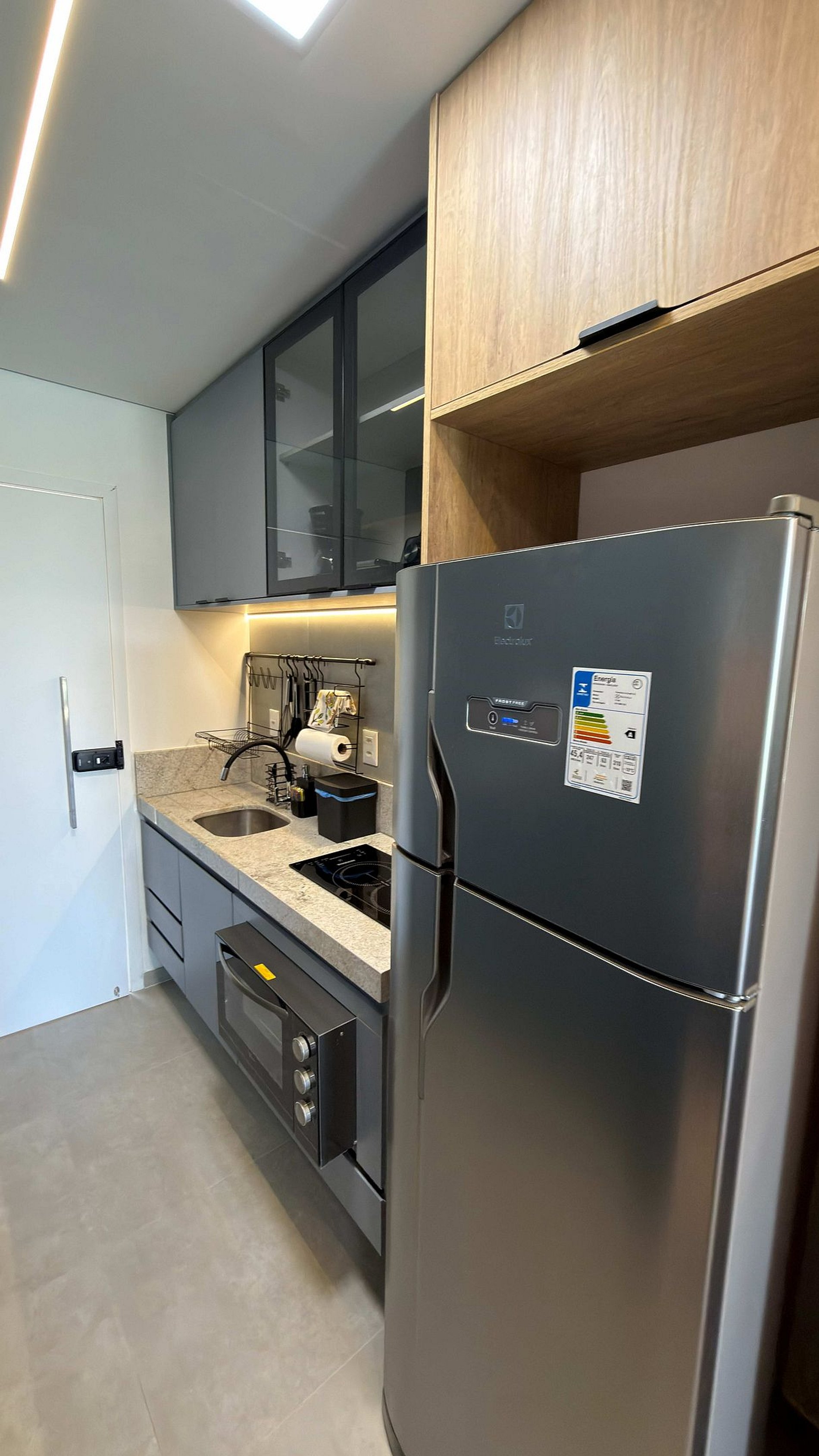 Cozinha equipada com utensílios básicos, Geladeira, Cooktop, Micro-ondas, Cafeteira, sanduicheira, Airfryer, Ferro de Passar, Secador de cabelo, Chaleira elétrica, Louças, copos, taças vinho, champne, e talheres,cadeiras de praia e ombrelone.