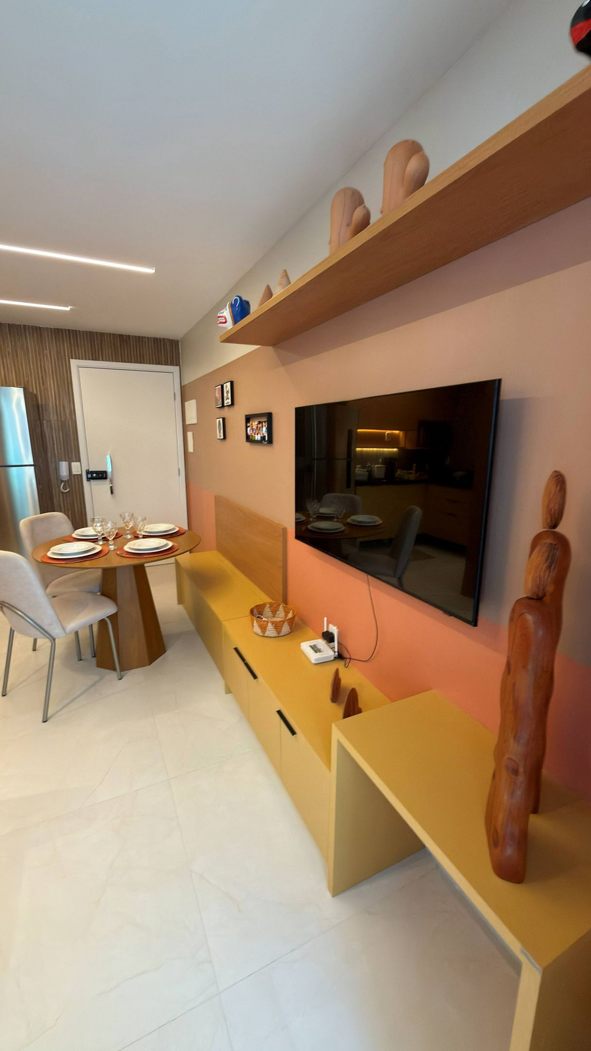 Dispomos de uma cozinha completa com todos os utensílios para uma excelente estadia, quarto confortável e amplo, sala de jantar e estar em um mesmo espaço com vista para piscina, além de um banheiro para uma boa ducha pós praia e piscina.