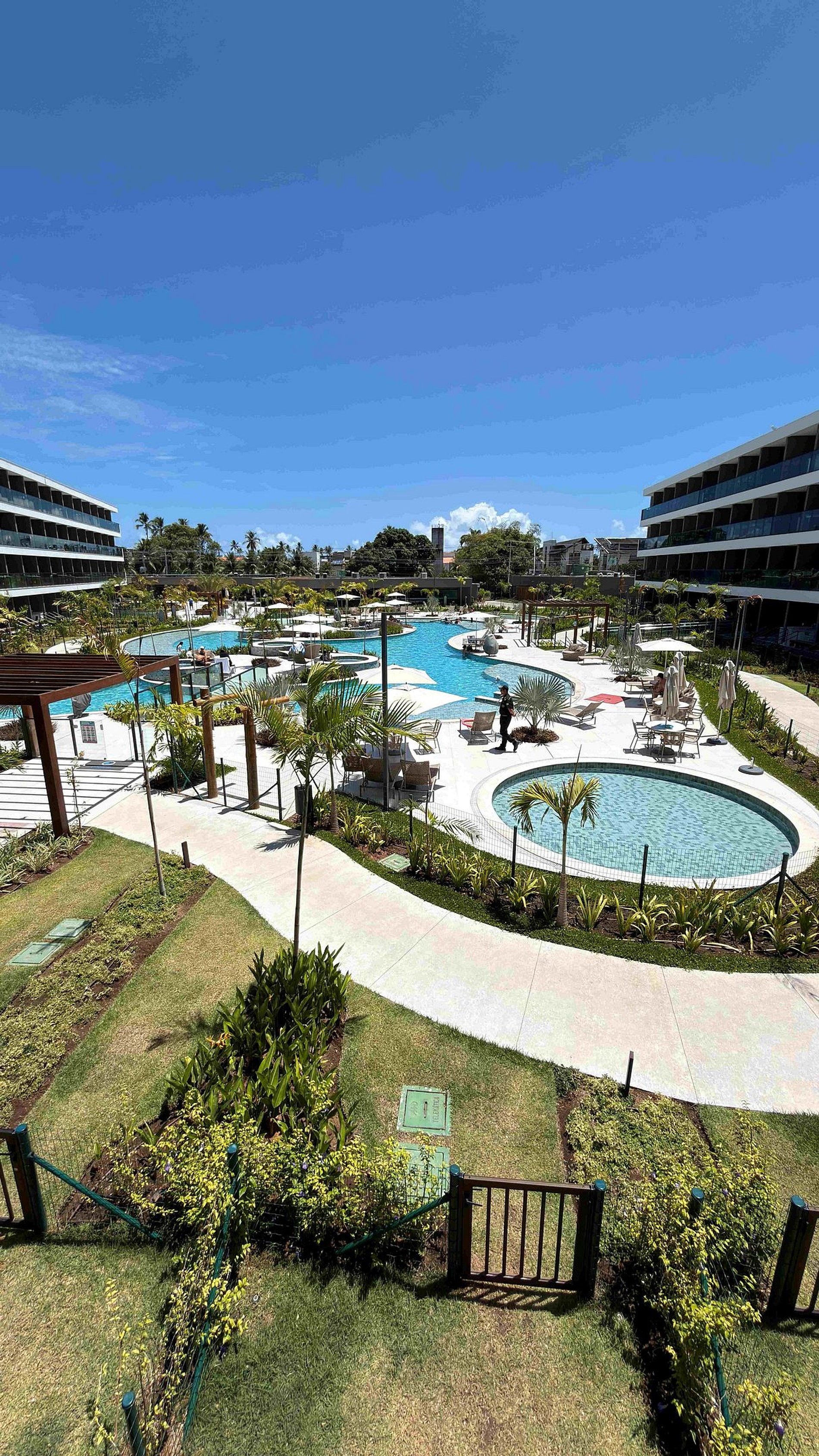 Apartamento com cozinha completa, cama confortável, TV Smart, home office e estrutura de resort com acomodação confortável, vista para o parque aquático, restaurante, quadra de jogos, parque infantil, pet place, academia, brinquedoteca, várias jacuzzi, ambinete para churrasco, ambiente banho dos pets.